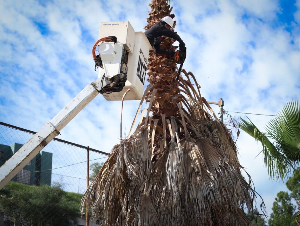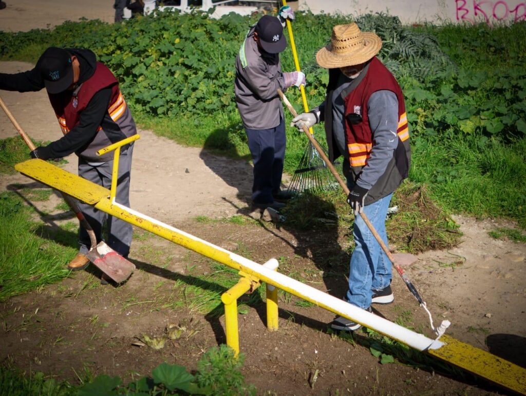 Posteriormente, en la colonia Loma Bonita, fraccionamiento Lomas Verdes, en la Delegación La Mesa, con la participación activa de vecinas y vecinos, se realizaron acciones de limpieza y mantenimiento de áreas verdes en una superficie de mil 200 metros cuadrados, poda de palmas en las inmediaciones de una cancha de usos múltiples y de un canal pluvial, pintado de juegos infantiles, así como la recolección de 1.5 toneladas de basura, impactando positivamente a mil 500 personas.