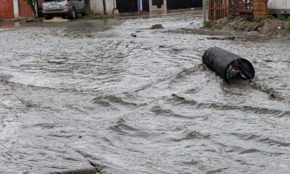 Lluvias ligeras pero persistentes colapsan la calle Tibuquina en la colonia La Morita de Tijuana, provocando riesgos para la población.